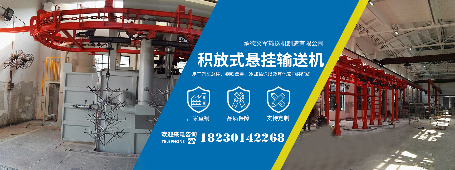承德文軍輸送機(jī)制造有限公司位于承德縣孟家院鄉(xiāng)工業(yè)園,自2009年起公司專注生產(chǎn)制造各類工廠物流自動(dòng)化設(shè)備,替代了進(jìn)口產(chǎn)品,并成功進(jìn)入了國外市場(chǎng),再此基礎(chǔ)上公司的AS/RS自動(dòng)化立體倉庫成功用于煙草、發(fā)動(dòng)機(jī)、鑄造型芯、以及其他物流配送中心,公司的積放式懸掛輸送機(jī)廣泛用于汽車總裝、鋼鐵盤卷、冷卻輸送以及其他家電裝配線等。